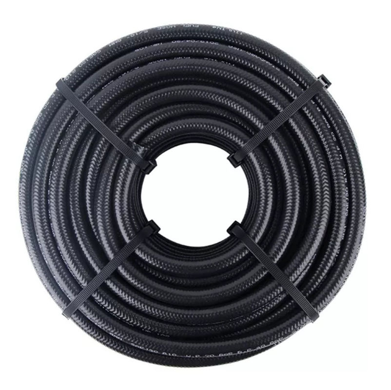 • फाइबर ब्रेडेड परत, प्रत्यारोपित हेलिकल स्टील तार द्वारा प्रबलित।
